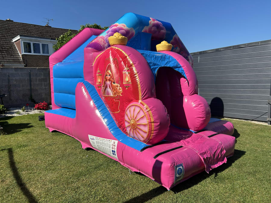 Elevate your child's special day with our enchanting 3D Princess Carriage Bouncy Castle With Front Slide. This stunning piece is perfect for any princess themed bouncy castle party, making it an unforgettable experience for your little princess and her guests. Ideal for Girls Birthday parties, weddings, christenings, and family holidays, this bouncy castle is sure to be the highlight of your event.