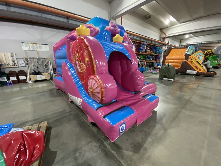 Make your event a royal affair with our 3D Princess Carriage Bouncy Castle With Front Slide — where dreams come true! 👑
